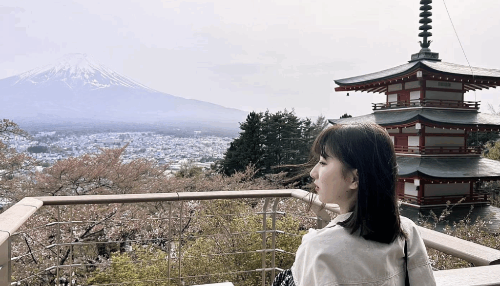 Standing by the lake with Mount Fuji rising in the background, I felt truly overwhelmed by how grand and majestic it looked — calm, powerful, and endlessly beautiful.